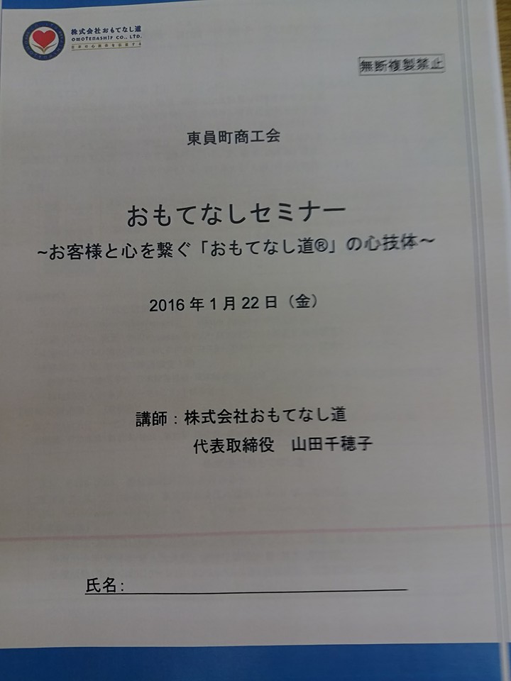 2016年1月22日、東員町役場様にて、『新春おもてなしセミナー』を実施いたしました。